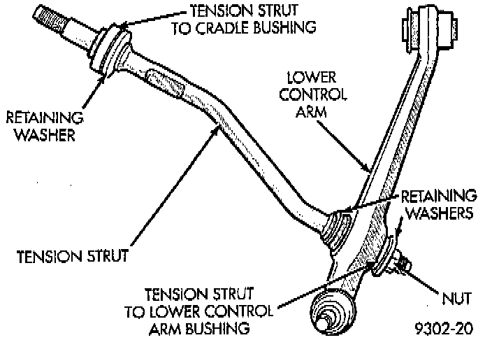 NOTE: To remove tension strut to cradle bushings from vehicle for replacement, the tension strut and lower control arm first MUST be removed as an assembly from the vehicle.REMOVE