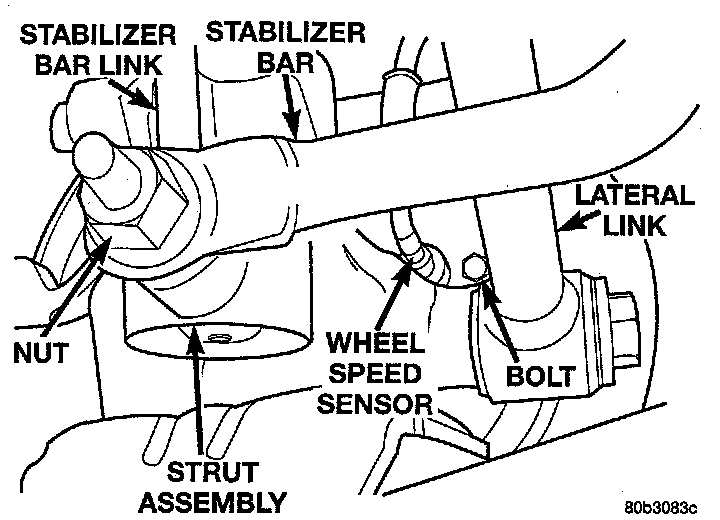 11. Tighten the lateral links to spindle attaching bolt to a torque of 135 Nm (100 ft. lbs.).