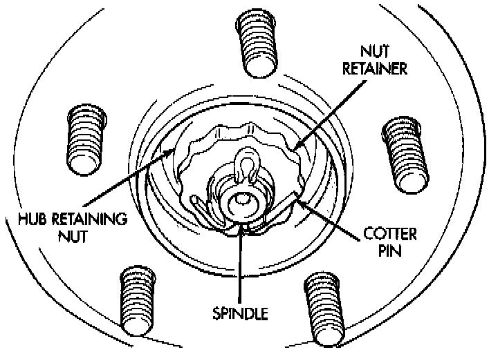 6. Install the rear hub and bearing assembly on the rear spindle. Install hub and bearing assembly retaining washer and nut on spindle. Tighten the hub and bearing retaining nut to a torque of 168 Nm (124 ft. lbs.).