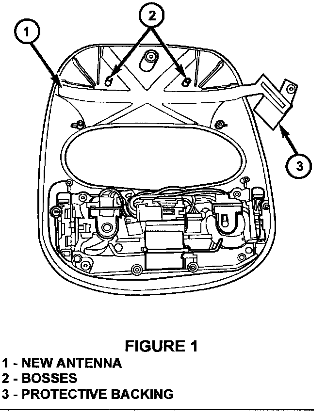 7. Place the new antenna, p/n 04602316AA, over the two round bosses with copper side up (Figure 1).