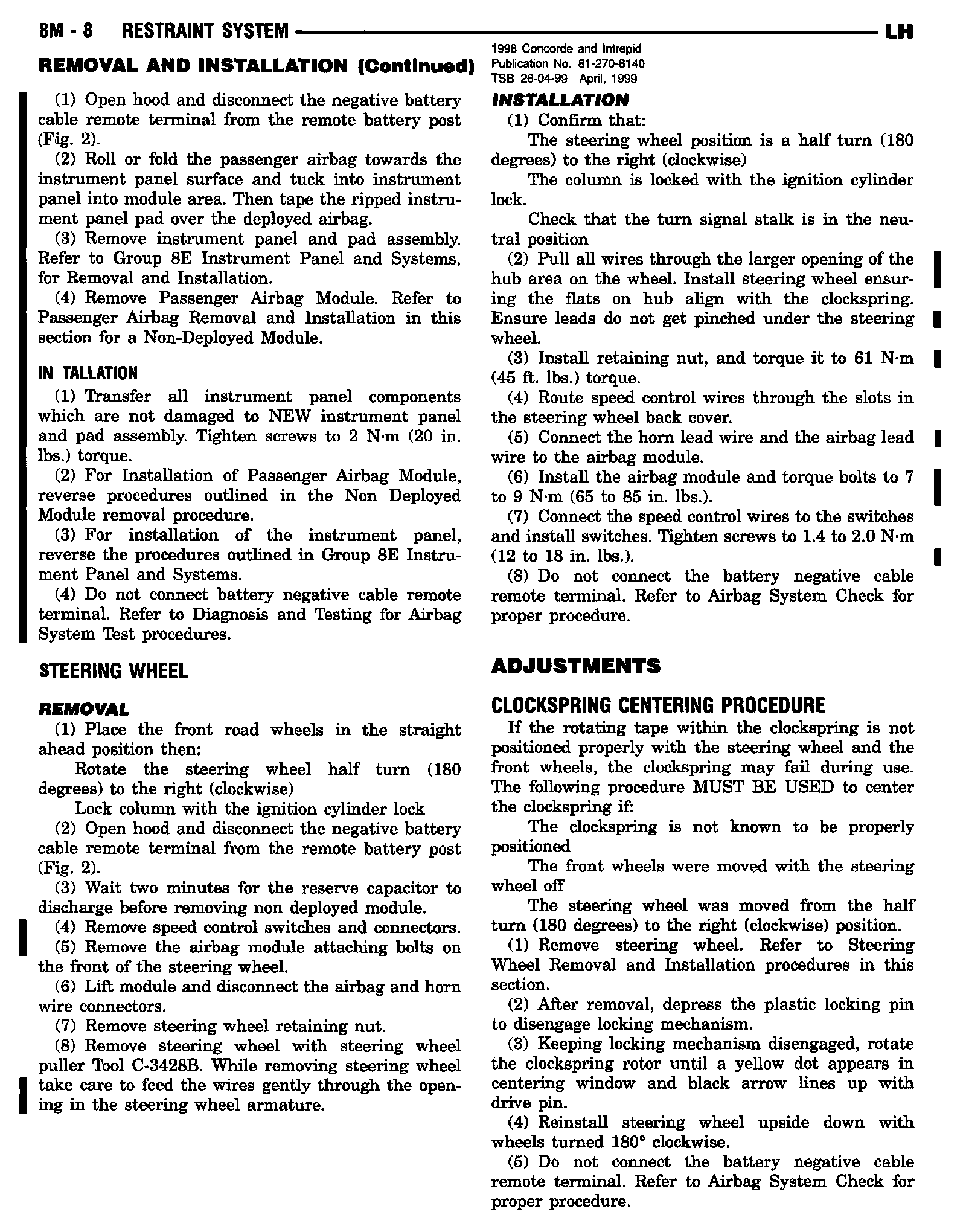 1998 Concorde, Intrepid, LHS, 300M Service Manual - Publication Number 81-270-8140