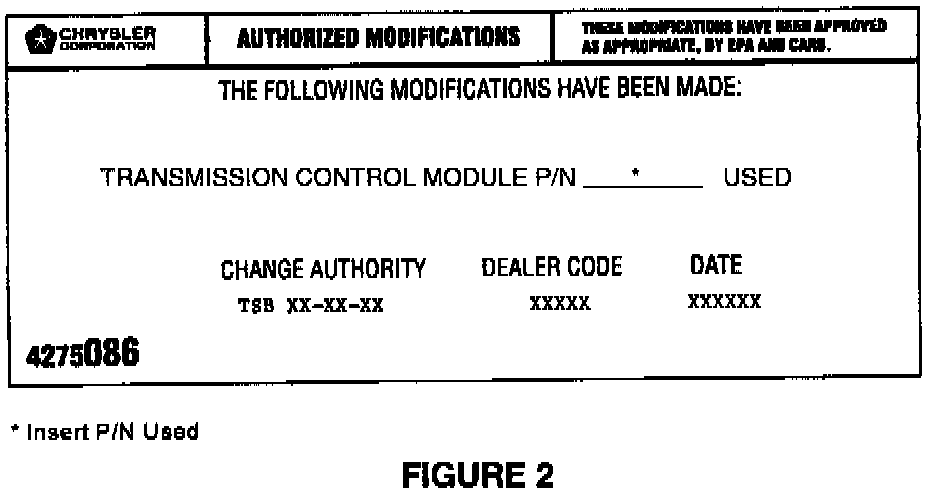 9. Type the necessary information on the 1Authodzed Software Update Label" p/n 04669020 (Figure 1). Attach the label to the TCM and cover the label with the clear plastic overlay.