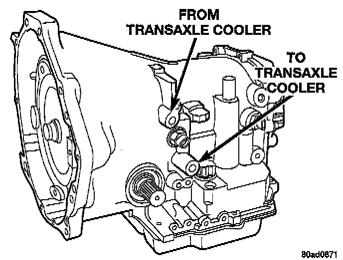 NOTE: When flushing transmission cooler and lines, ALWAYS reverse flush.