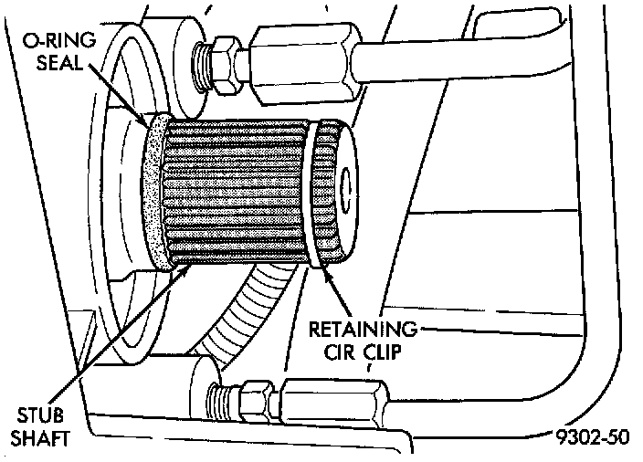 1. Replace O-ring seal and tripod joint retaining circlip on the transaxle stub shaft.
