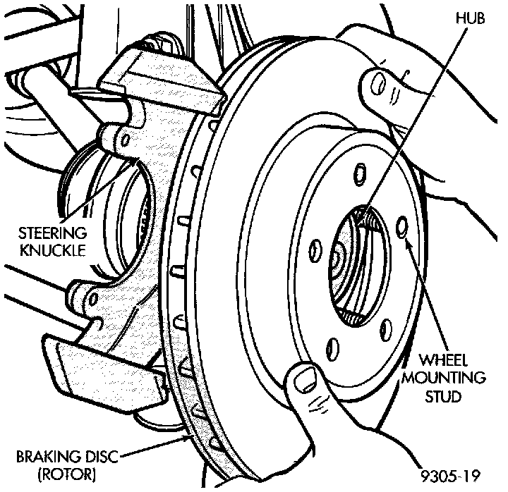 10. Install the braking disk on the hub and bearing assembly.