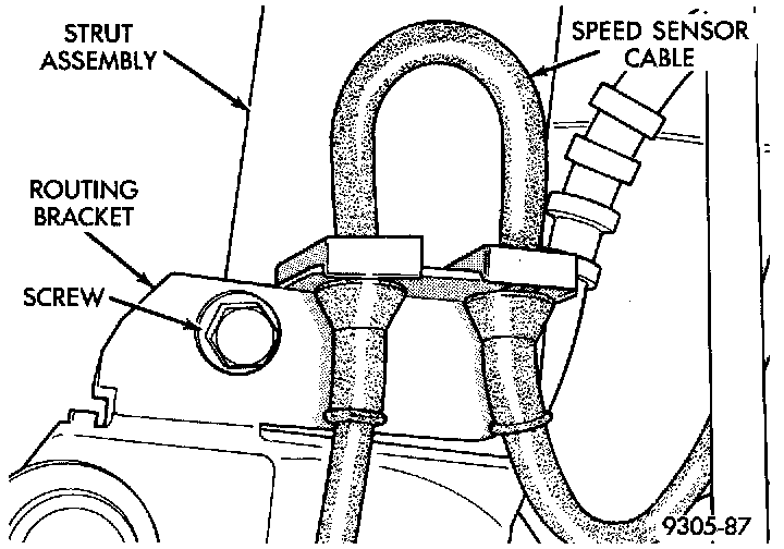 5. Remove the speed sensor cable routing bracket from the strut assembly.