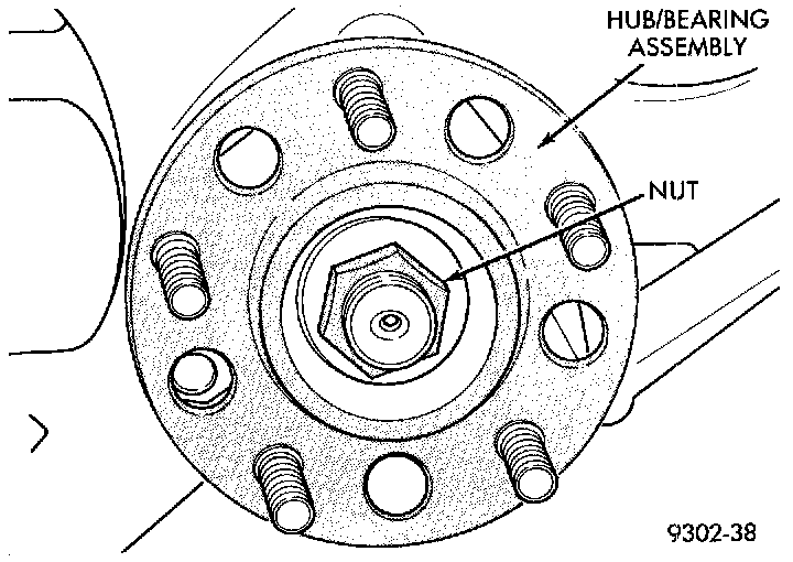 6. Remove the hub and bearing to stub axle retaining nut.