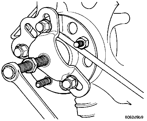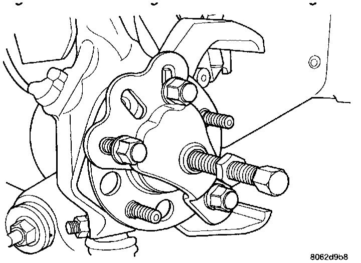 7. Install Puller, Special Tool 6790 on hub and bearing assembly, using wheel lug nuts to secure it in place.