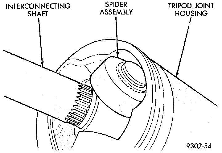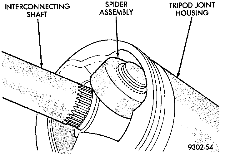 3. Slide the interconnecting shaft and spider assembly out of the tripod joint housing.