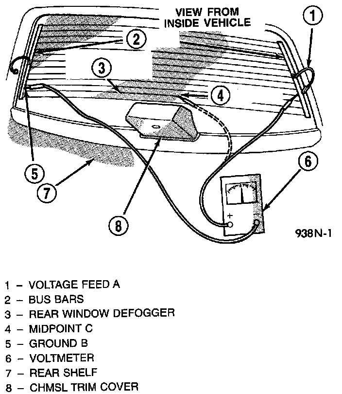 The horizontal grid line and vertical bus bar line is printed and fired on the inside surface of the rear window glass. These comprise and electrical circuit. The electrically conductive lines are composed of a silver ceramic material which when fired on glass becomes bonded to the glass and is highly resistant to abrasion. It is possible, however that a break may occur in and individual grid line resulting in no current flow through the line. To detect breaks in grid lines, the following procedure is required: