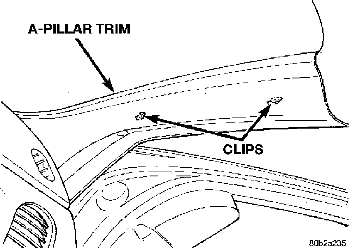 2. Disengage clips attaching trim to A-pillar by pulling on trim A-Pillar Trim