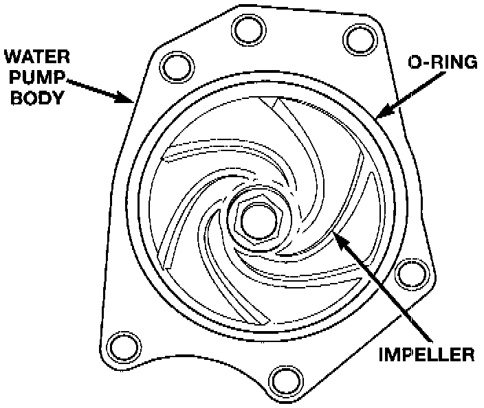 The 3.2L pump has a plastic swept vane impeller. The housing bolts directly to the right rear timing belt cover, using a O-ring gasket for pump to cover sealing. The pump is driven by the engine timing belt.