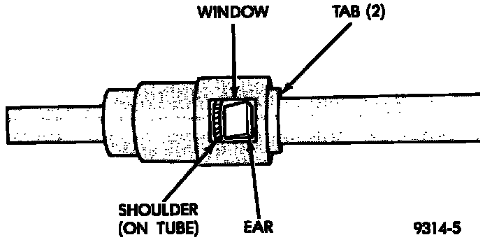 4. The quick-connect fitting has windows in the sides of the casing. When the fitting completely attaches to the fuel tube, the retainer locking ears and the fuel tube shoulder are visible in the windows.