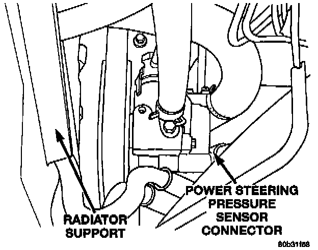 Radiator Support, Power Steering Pressure Sensor Connector: