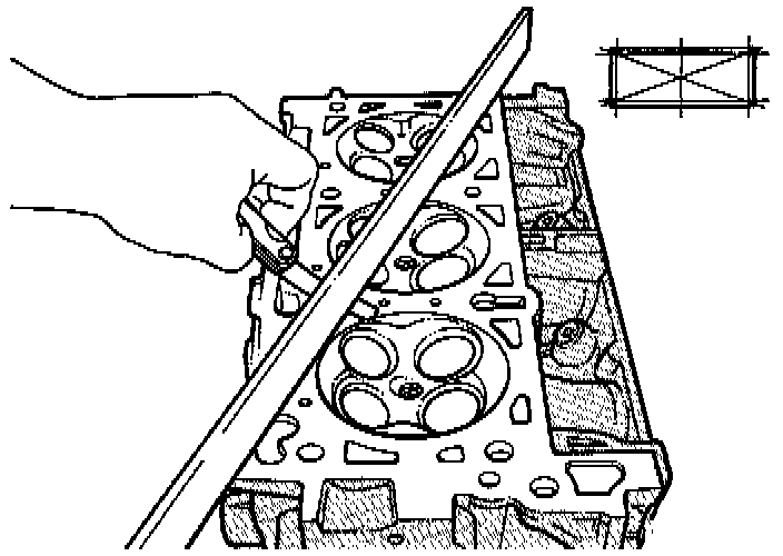CAUTION: 0.20 mm (0.008 inch) MAX is a combined total dimension of the stock removal limit from cylinder head and block top surface (Deck) together.