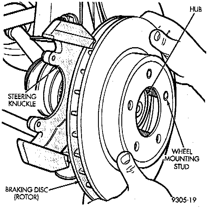 - When installing hub and bearing assembly into steering knuckle, be careful not to damage the flinger disc on hub and bearing assembly. If flinger disc becomes damaged, hub and bearing assembly MUST not be used and MUST be replaced with a new hub and bearing assembly.