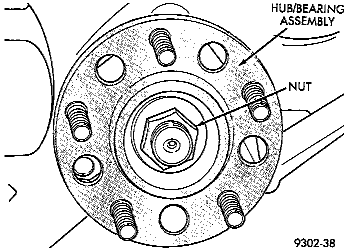 6. Install a NEW hub and bearing assembly to stub shaft retaining nut. Tighten, but do not torque the hub nut at this time.