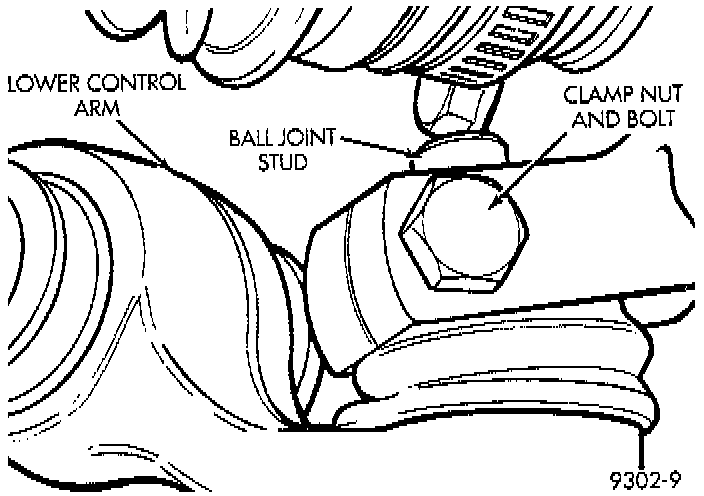 1. Install steering knuckle on ball joint stud. Install steering knuckle to lower ball joint attaching bolt and nut into steering knuckle. Tighten the attaching bolt to a torque of 55 Nm (40 ft. lbs.).