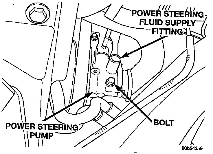 5. Remove the power steering fluid supply fitting from the power steering pump.