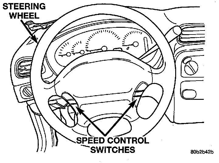 9. Remove the speed control switches from the steering wheel. The speed control switches are mounted to the steering wheel by two screws (one screw, each switch) which are accessible from the back side of the steering wheel.
