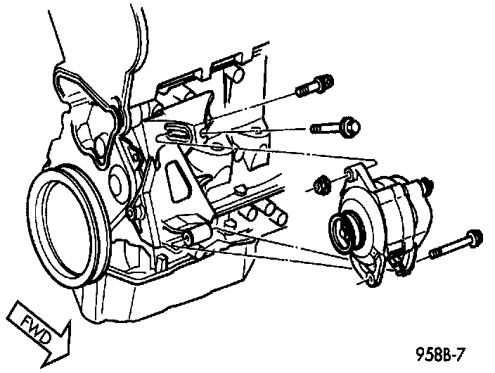 10. Release generator from mounting bracket and move it toward passenger head lamp bucket.