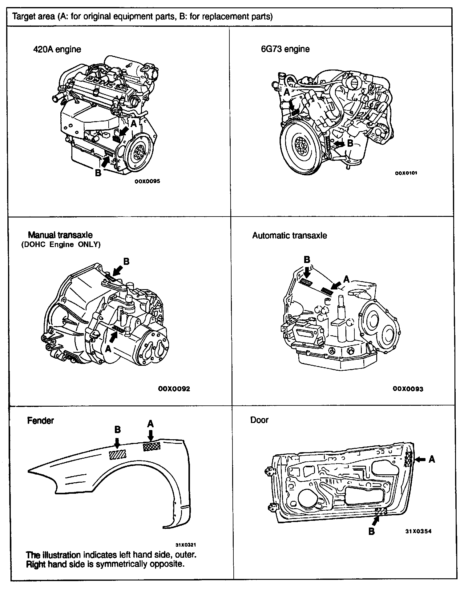 In addition, a theft-protection label is attached to replacement parts for the body outer panel main components, and the same data is stamped into replacement parts for the engine and the transaxle.