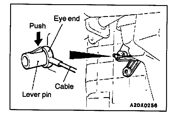 (1) Push the lever pin to disconnect the air outlet changeover damper cable.