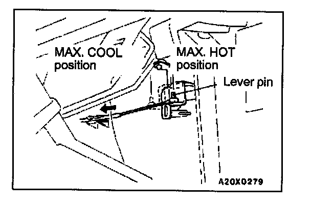 (3) Set the air mix damper lever at the top of the heater unit to the MAX. HOT position, and install the cable to the lever pin.