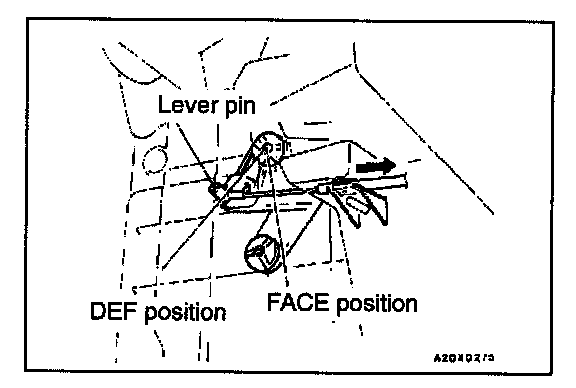 (6) Set the air outlet changeover damper lever of the heater unit to DEF position and install the cable to the lever pin.