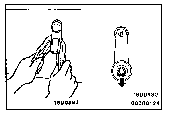 2. Fully close the door glass, and install the regulator handle so that it faces as shown.
