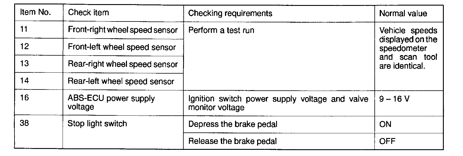 When the diagnostic trouble system stops the ABS-ECU, the scan tool display data will be unreliable.