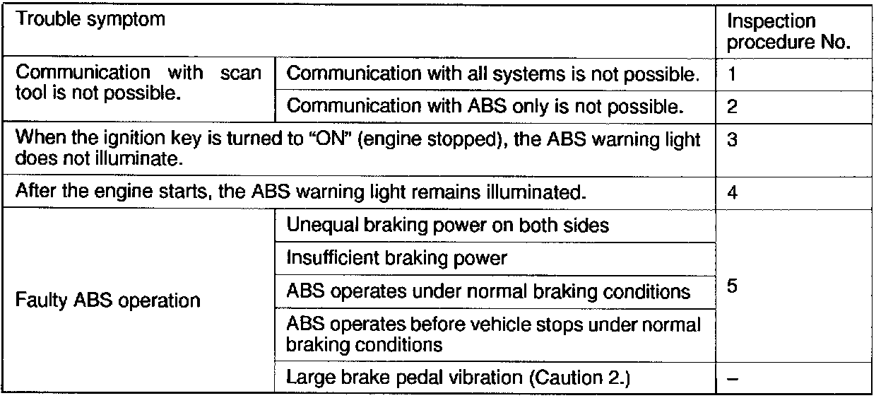 1. If steering movements are made within driving at high speed, or when driving on road surfaces with low frictional resistance, or when passing over bumps, the ABS may operate even though sudden braking is not being applied. Because of this, when getting information from the customer, check if the problem occurred while driving under such conditions as these.