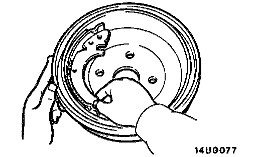 3. Chalk inner surface of brake drum and rub with shot and lining assembly.