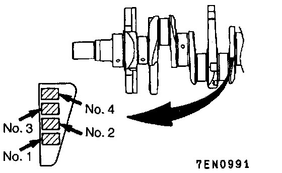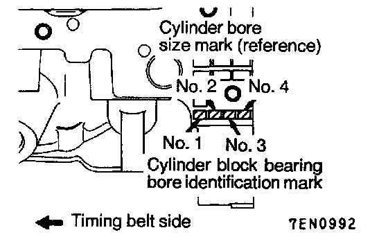 1. When replacing the bearings, select the bearing according to the identification marks which are embossed on the crankshaft and cylinder block.