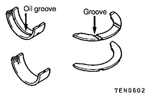 4. Install the bearing halves with oil groove on the cylinder block side.