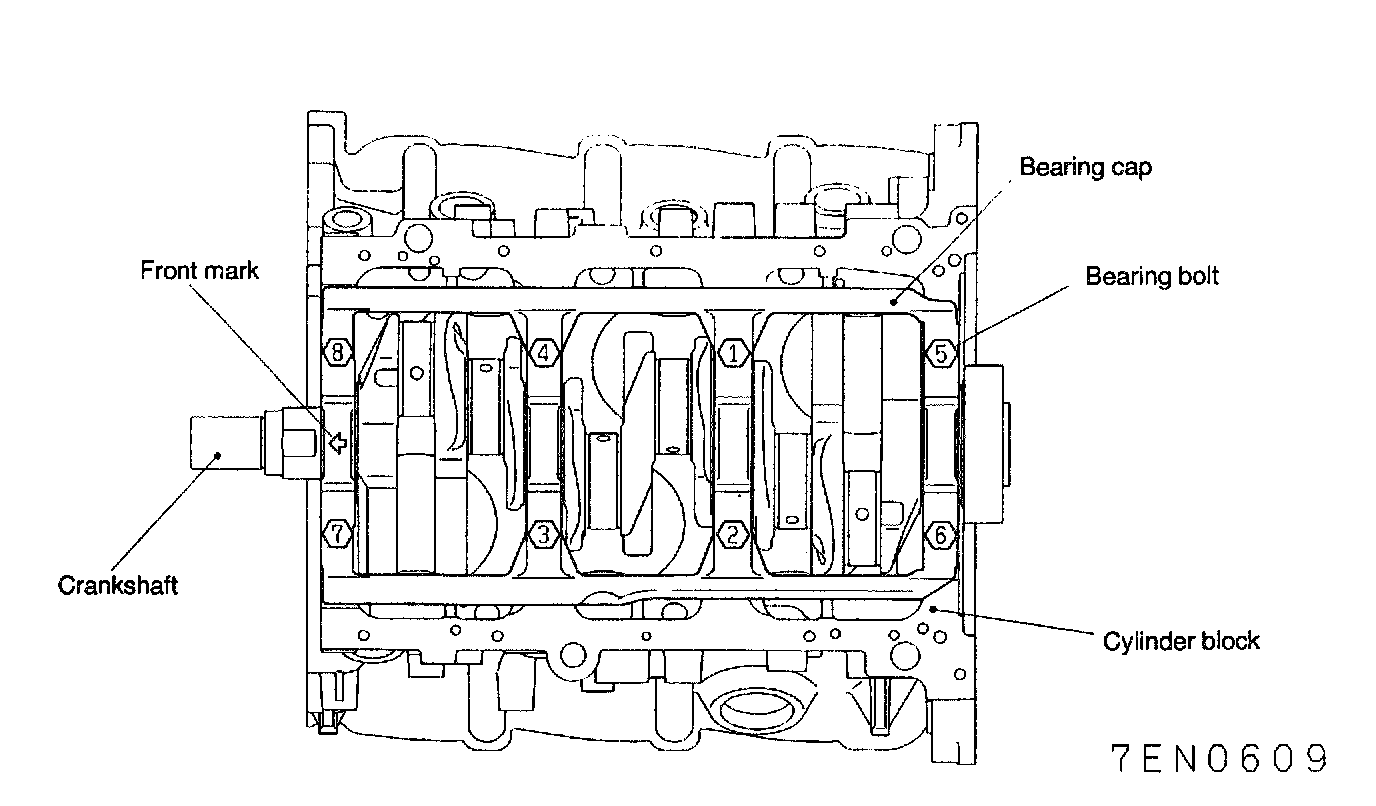 3. Tighten the bearing cap bolts to the specified torque in the tightening sequence shown in the illustration.