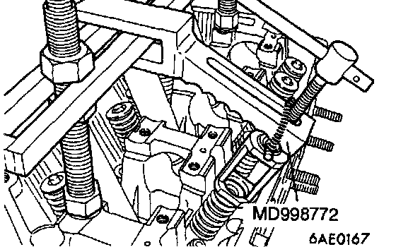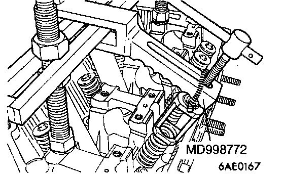1. Using the special tool, compress the spring.