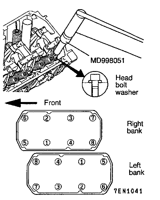 Caution: Attach the head bolt washer in the direction shown in the figure.