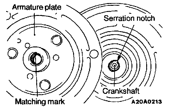 Align the mating mark of the crankshaft spline and the mating mark of the armature plate, and then fit them together.