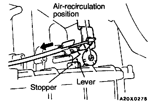 8. Set the lever for the inside/outside air change-over on the heater control assembly to the air-recirculation position.