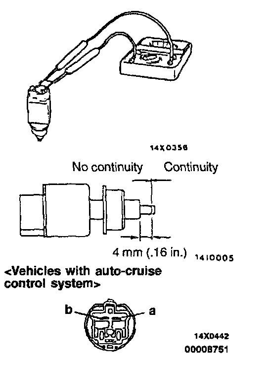 For vehicles with auto-cruise control system, a continuity should be checked between connectors "a" and "b" of the stop light switch.