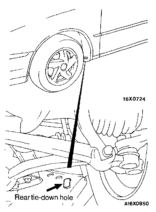 4. Attach a chain or wire to the rear tie-down holes. Secure the end of the wire or chain.