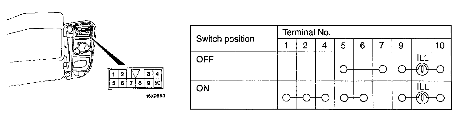 Hazard Warning Light Switch Continuity Check: