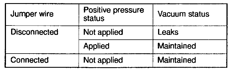7. Turn the negative battery terminal side jumper wire on and off and apply vacuum and positive pressure to check the air tightness.