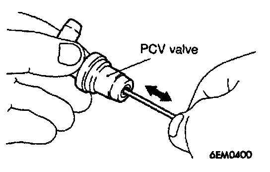 1. Insert a thin rod into the positive crankcase ventilation (PCV) valve from the side shown in the illustration (rocker cover installation side), and move the rod back and forth to confirm that the plunger moves.