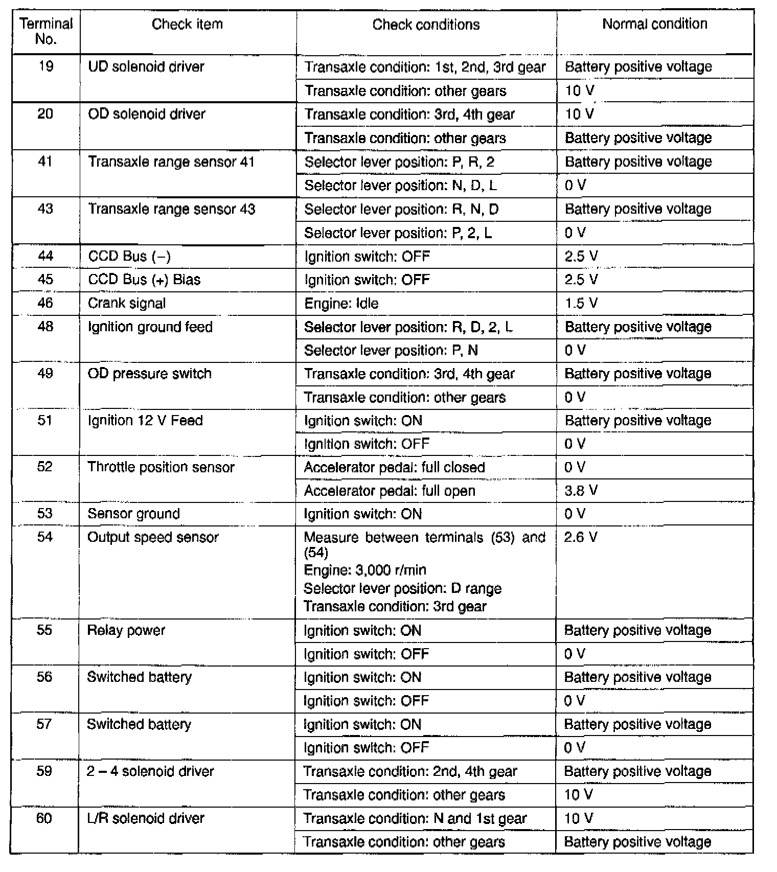 Pinout Values and Diagnostic Parameters