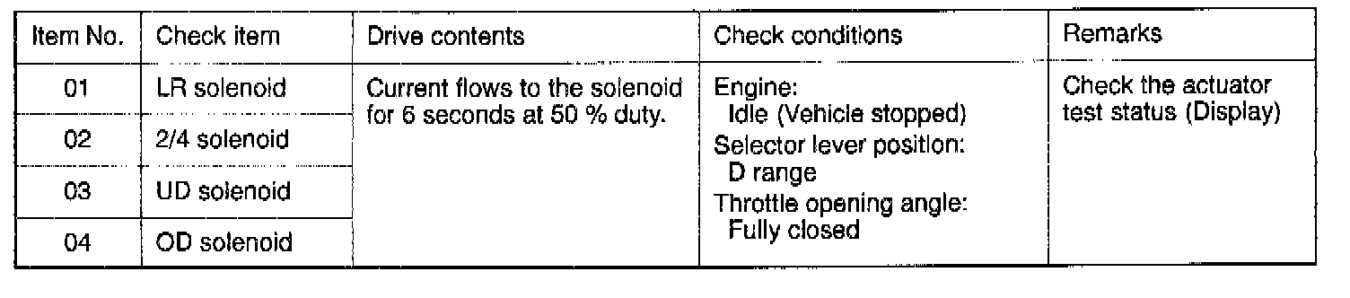 Actuator Test Reference Table