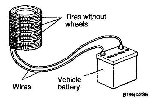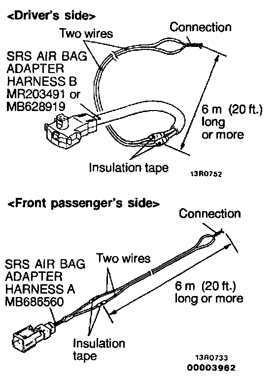3. Connect two wires, each six meters (20 feet) long or more, to the two leads of SRS AIR BAG ADAPTER HARNESS B