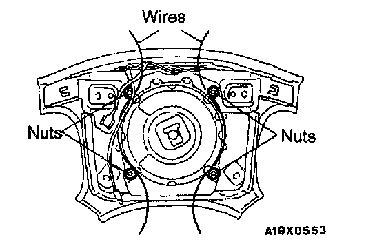 1. Install nuts that are no longer needed to the four bolts on the rear side of the air bag module, and tie on some thick wire to secure to the wheel.