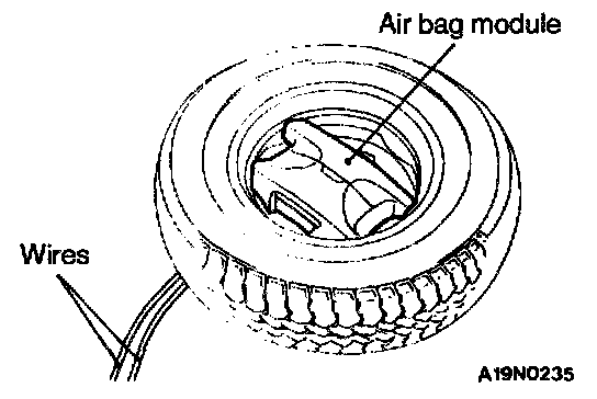 1. Connect the deployment wires to the SRS air bag adaptor harness A, pass it beneath the tire and wheel assembly, and connect it to the air bag module.